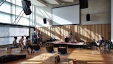 The AEB Auditorium was conceived as a flagship space for how the didactic pedagogy of the conventional auditorium could be transformed to one built around a performance-based mode.