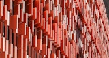 Whilst the Terracotta elements are typically used as façade tiles, the AEB used a proprietary system using a variation of Moeding’s product Longoton. The use of terracotta highlights the use of traditional materials and creates a distinctive character. The small vertical sections of terracotta allow for more precision in the façade system. The panels comprise of two tiles assembled onto either side of a stainless-steel plate. This system is an economical way of production and additionally allows for ease of replacement of individual tiles.