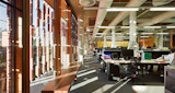 The fenestrated façade pattern was designed in vertical modules, orientated to direct views to the lake and to minimise direct solar radiation and glare to achieve a targeted solar penetration value. The terracotta modules are also strategically positioned to optimise daylight levels for interior workspaces and cross-ventilation. The angles play an important role in creating ambient display of shadows inside the workspaces. Each vertical module was individually craned into place.