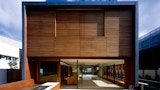 The building is largely opened on the short access to allow views out of site with the living level utilising sliding screens to open the interior completely to the exterior. The long axis walls are largely solid and openings are finely screened with vertical timber to blend with the vertical cedar cladding to give the sense of taught solid volume folding over the long sides. On the short axis to the bedroom level the openings are finely screened with horizontal timber members which from within allow exterior views whilst presenting a solid volume albeit with a subtle change in texture. The careful screening allows the opening of the building without compromising security or privacy from the adjacent dwellings.