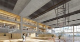 A large indoor sports hall that caters for basketball and a range of other sports is then roofed with a 50 meter competition swimming pool. This presented technical challenges requiring innovative structural and building systems solutions. Ancillary facilities are stacked to the side to provide both physical and visual connection.