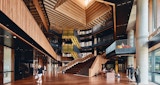 The crossroads formed at the North point of the Centre inform the planning - capturing activity from this hub and feeding it through and amongst the various collaborative spaces within the building. The street like frontage also encourages connection between the campus’ proposed central plaza to the South.