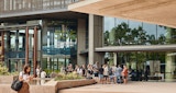 The James Cook University Townsville EIP building form opens up to the Mall and places all of the key engagement components to activate movement along that spine through the campus, from the Industry Garage to the atria, the MMS, and the Workshop.