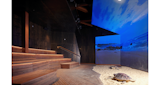 The diagrid structure also informed the plan shape. Thus, creating a multi-faceted series of triangular folds for protected openings, to limit light spill, while enhancing the mystery of the arrival experience. The diagrid pattern is celebrated throughout the interior, and the diamond pattern implies the intricate patterns of the turtle carapace.